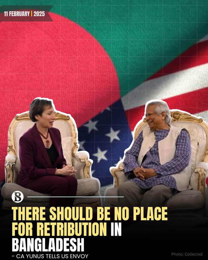 Chief Adviser Prof Muhammad Yunus on Tuesday conveyed to the US envoy in Dhaka that he has called for "reconciliation" in Bangladeshi society, urging people to "break the cycle of retribution" and to create the grounds for peace and harmony in the country.