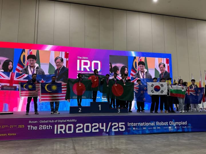 The Bangladesh Robot Olympiad team won a total of 10 medals, including 2 gold medals, 4 silver medals, and 4 bronze medals, at the 26th International Robot Olympiad in Busan, South Korea.