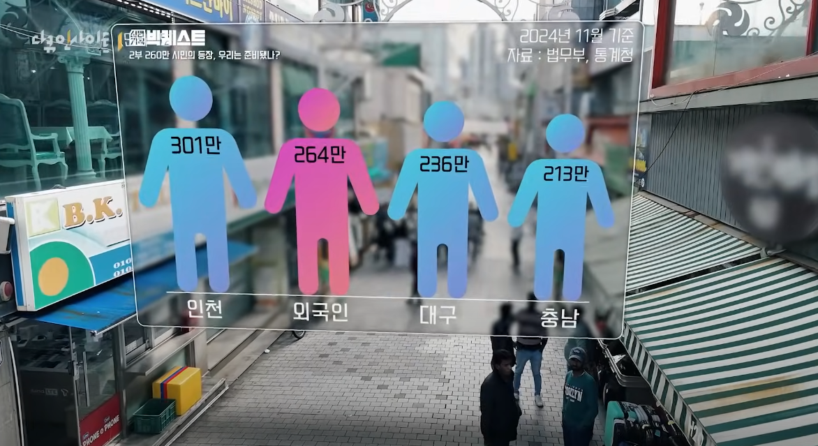 현재 국내 체류 외국인은 약 260만 명에 이르며, 조선업과 제조업 등 다양한 산업에서 핵심적인 역할을 하고 있습니다. 이 다큐멘터리는 외국인의 경제적 기여뿐 아니라 지역 경제 활성화와 사회적 다양성을 이끄는 역할을 강조합니다.