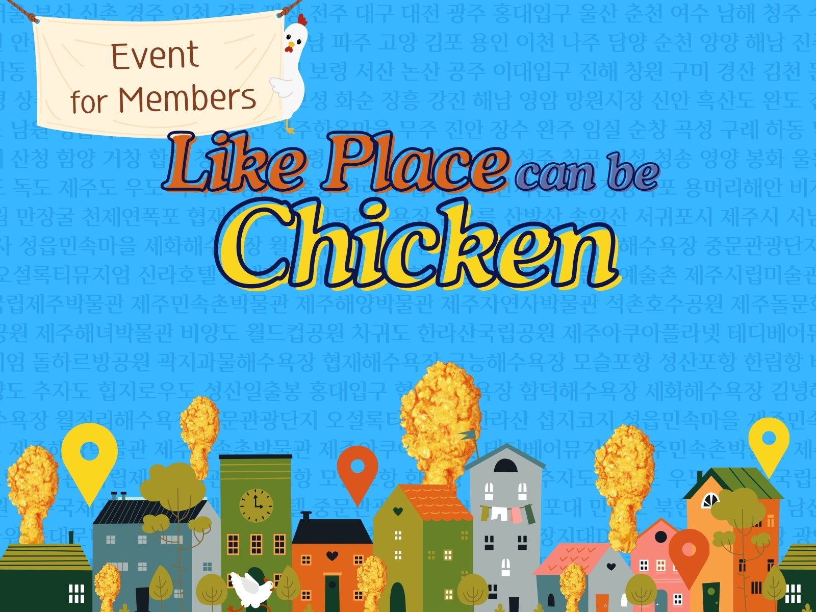 여러분이 좋아하거나, 방문한 적이 있거나, 현재 살고 있거나, 가고 싶은 한국의 지명을 댓글로 적어주세요! 댓글은 꼭 한국어로 작성해 주세요. 1인당 최대 5개의 댓글을 남길 수 있습니다. (6개 이상의 댓글을 남기면 조건을 충족하지 않아 탈락하게 됩니다.)